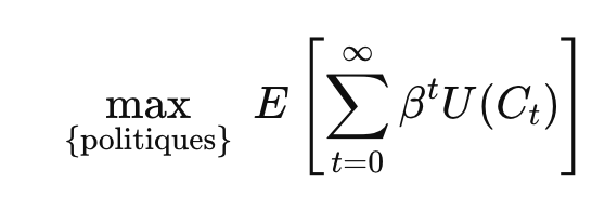 Formellement, dans ces modèles, on cherche à maximiser l’utilité espérée inter temporelle de la consommation mondiale :