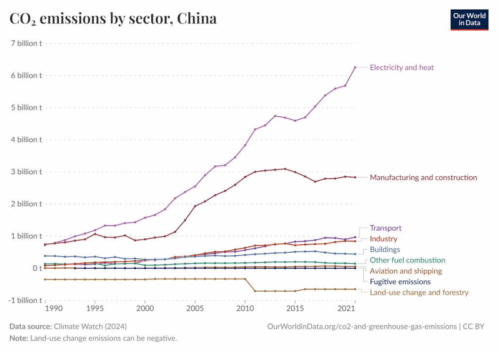 Émissions de CO2 par secteur en Chine